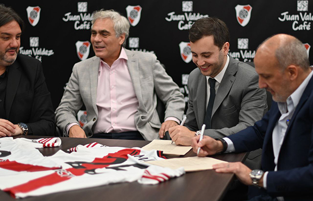 El Club alcanzó un acuerdo con la reconocida empresa cafetera por un año. La firma formal se realizó este jueves 7 de agosto en el Mâs Monumental y estuvieron presentes Stefano Di Carlo (Secretario General), Ignacio Amui (Protesorero) y Luis Landoni (Presidente