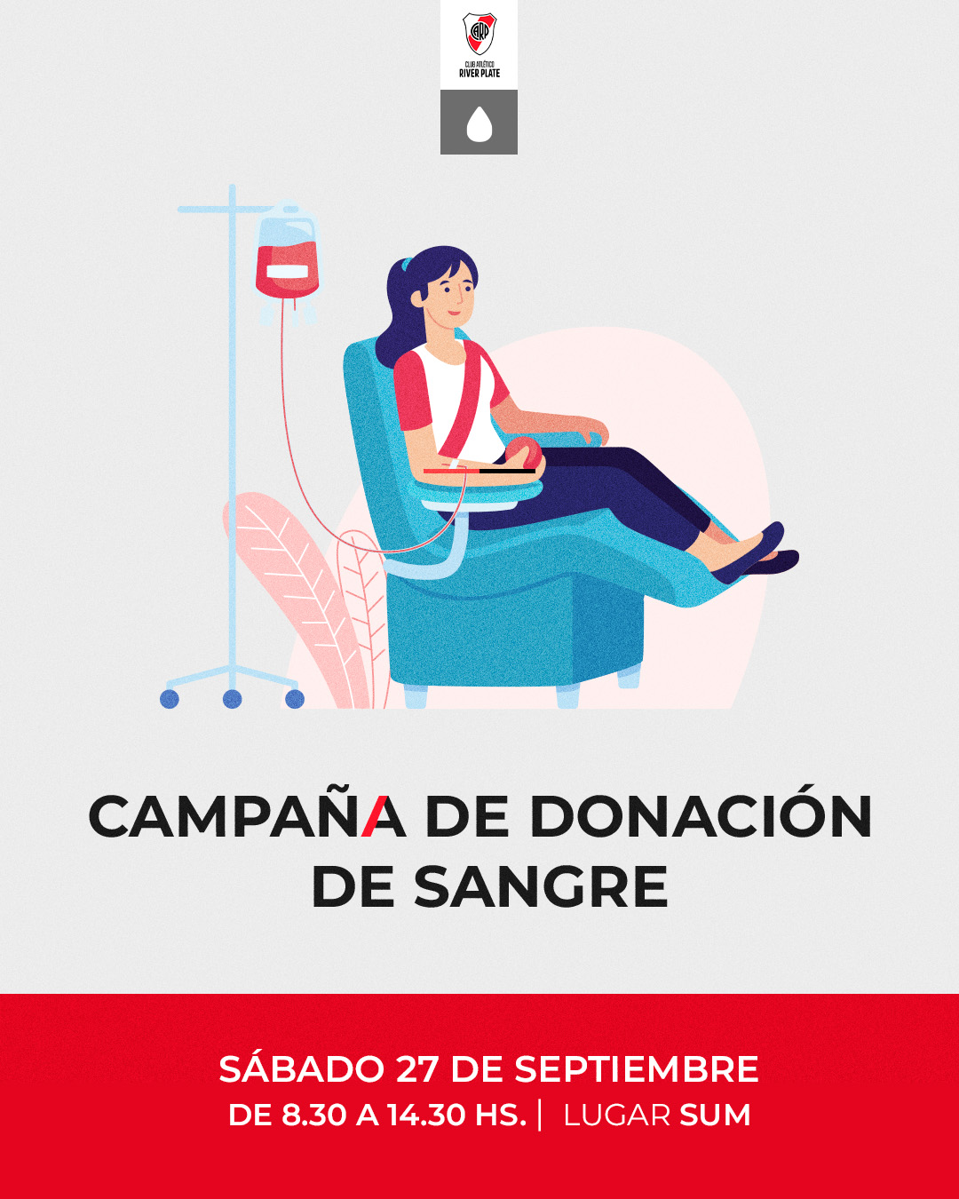 Este sábado 27 de septiembre de 2025, en el marco del Día Internacional del Hincha de River, la Institución llevará a cabo la tradicional iniciativa en el Salón de Usos Múltiples. REQUISITOS-Llevar DNI.-Tener entre 16 y 65 años.-Pesar más de 50 k.-2