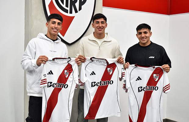 Este viernes por la mañana, en las oficinas del Mâs Monumental, tres futbolistas formados en el semillero de River firmaron sus respectivos contratos con el Club. Facundo González, marcador central de la Reserva, selló su primer contrato profesional, con vigencia hasta el